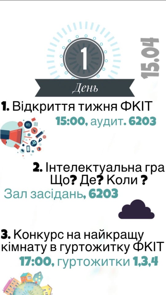 15 – 19 квітня 2019 року буде проходити тиждень ФКІТ, передбачені такі заходи: