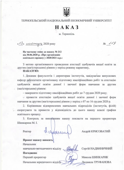 У зв’язку із внесенням часткових змін до графіку організації навчального процесу у 2020/2021 н.р. повідомляємо: