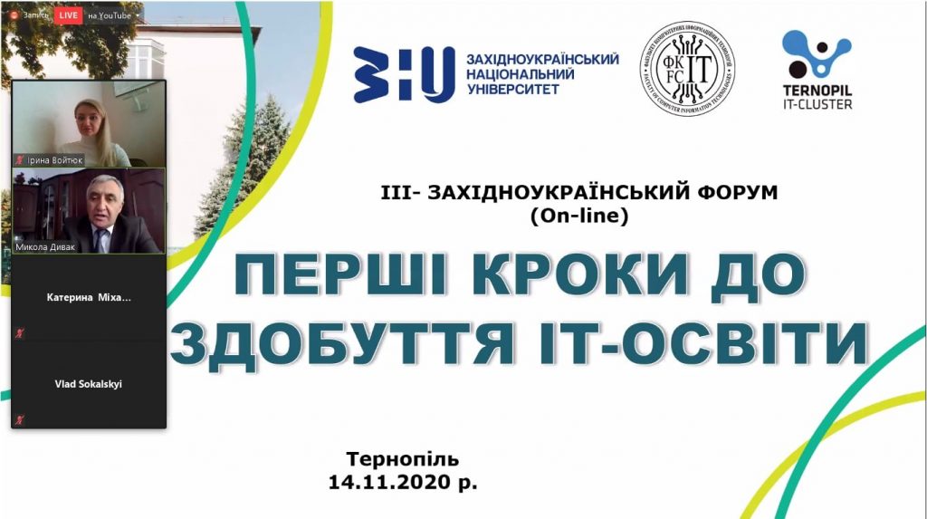 Під час ІІІ західноукраїнського форуму майбутні абітурієнти дізнались про умови вступної кампанії 2021, ІТ спеціальності, представлені на факультеті комп’ютерних інформаційних технологій ЗУНУ та відгуки студентів про навчання та дозвілля.