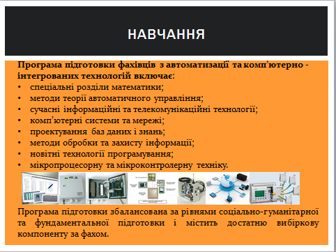 Програма підготовки фахівців з автоматизації та комп’ютерно – інтегрованих технологій включає: